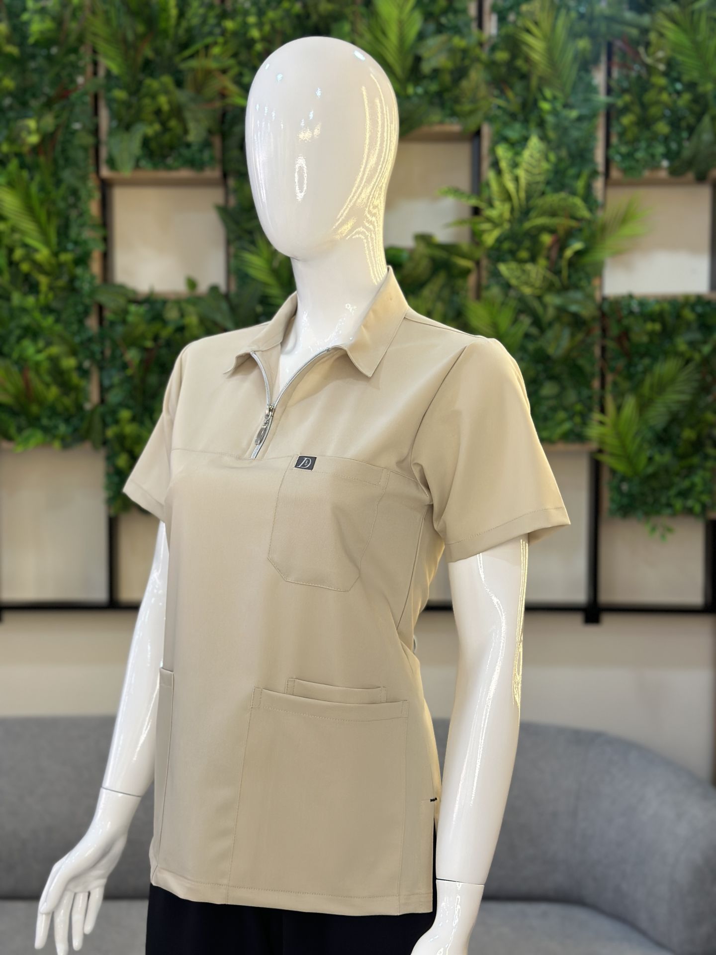 960 Bej Rengi Polo Yaka Fermuarlı Tek Üst